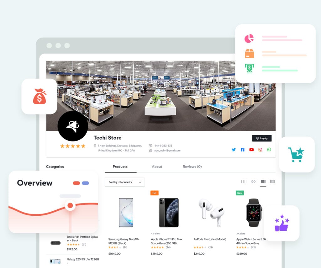 Gérez vos produits en toute simplicité : Ajoutez des produits physiques ou numériques avec leurs images, Organisez vos produits par catégories, Mettez en avant vos promotions et produits phares